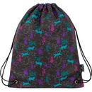 Praktický vak na cvičky alebo na prezúvky. Zatvára sa stiahnutím šnúrky. Sťahovacie šnúrky možno využiť aj ako ramenné popruhy a vak je možné nosiť ako batoh. Na prednej strane je vak ozdobený potlačou s motívom mačiek. Rozmery: 38,7 x 31 cm Nosnosť: 2 kg Materiál: 100% polyester Výrobca: Bagmaster